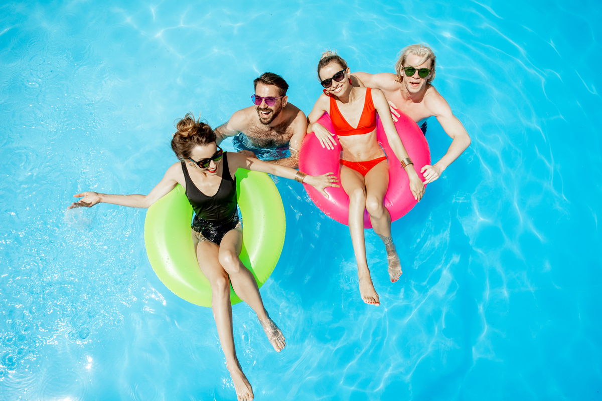 Das Sommerbad Schönefeld bietet ein Erlebnisbecken, einen Kleinkindbereich mit Wasserspielplatz und Rutsche ...