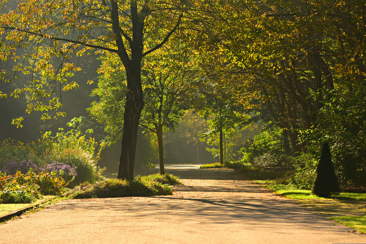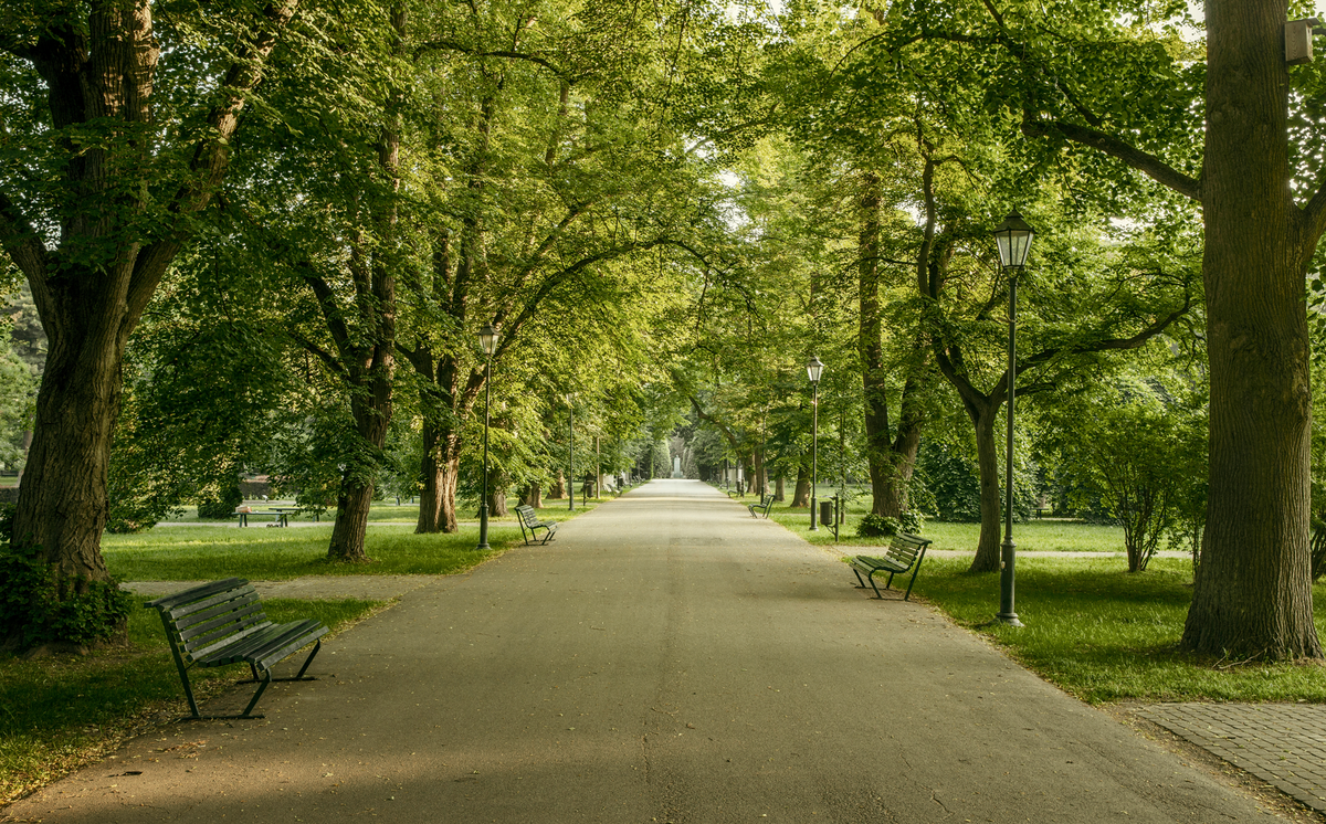 Der Abtnaundorfer Park ist einer der ältesten Parkanlagen in Leipzig. Breite Wege, die sich zwischen den Bäumen ...